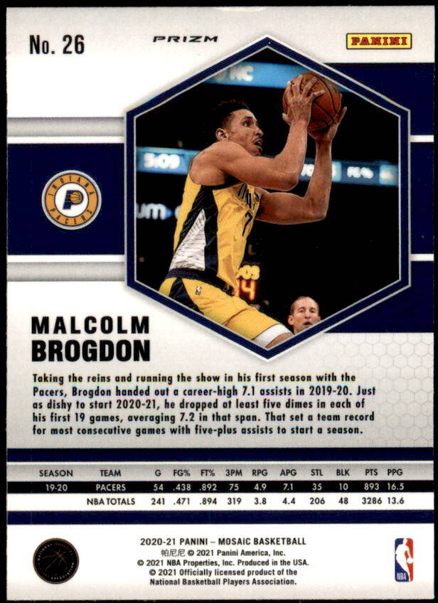 2020 Panini Mosaic Malcolm Brogdon Reactive Yellow Prizm (#26)