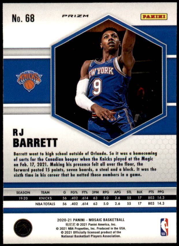2020 Panini Mosaic Rj Barrett Reactive Yellow Prizm (#68)