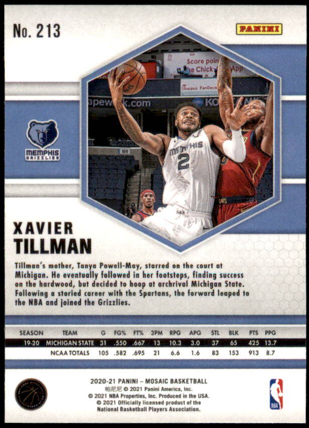2020 Panini Mosaic Xavier Tillman Rookie (#213)