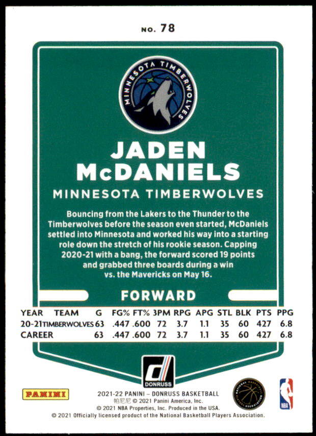 2021 Donruss Jaden McDaniels Holo Pink Laser (#78)
