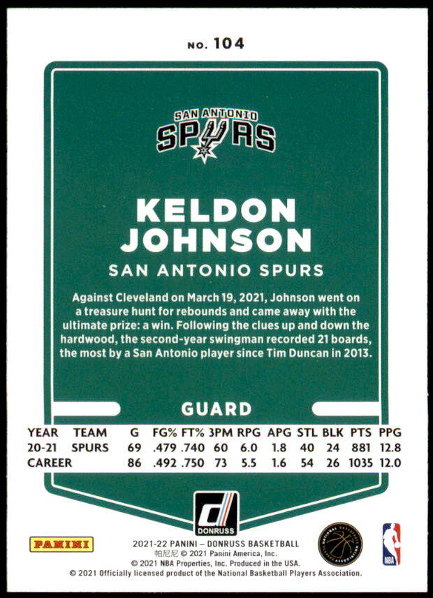 2021 Donruss Keldon Johnson Holo Pink Laser (#104)