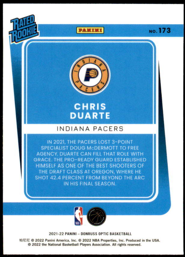 2021 Donruss Optic Chris Duarte Rated Rookie (#173)