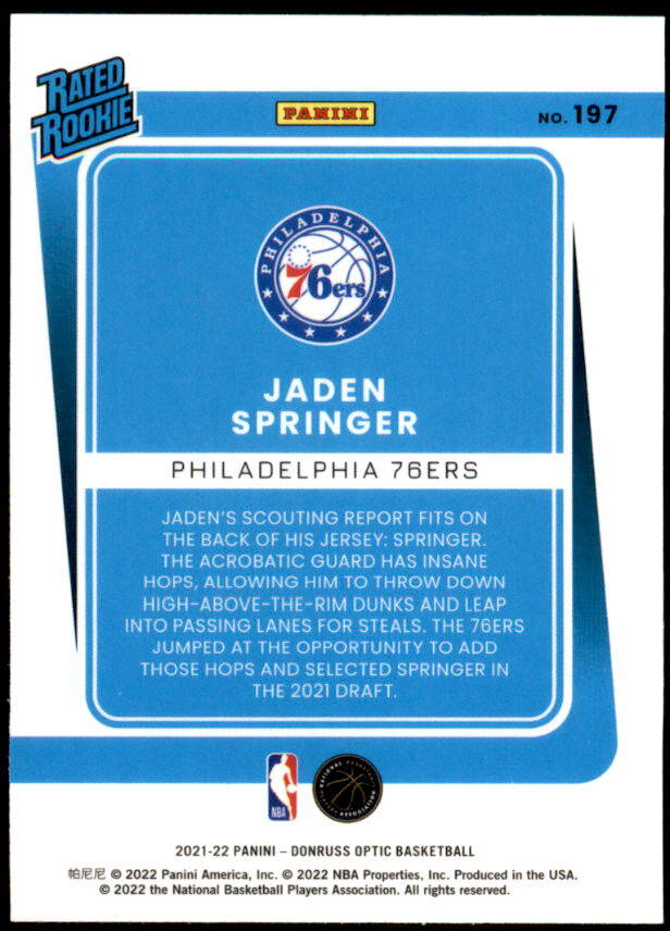 2021 Donruss Optic Jaden Springer Rated Rookie (#197)