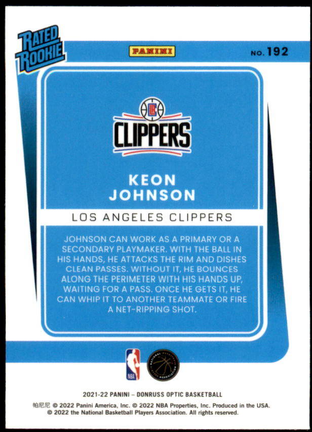 2021 Donruss Optic Keon Johnson Rated Rookie (#192)