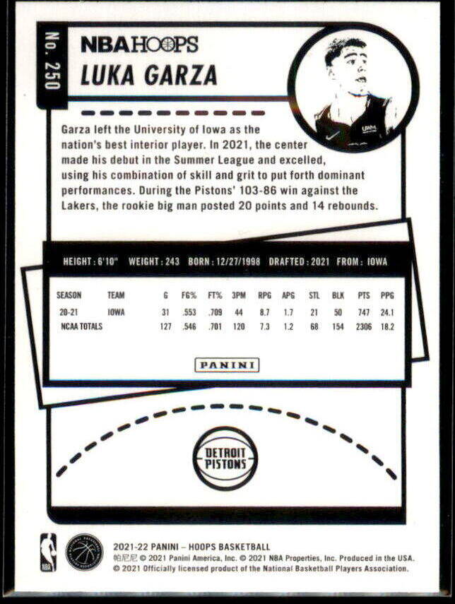 2021 NBA Hoops Luka Garza Rookie Green Ice (#250)