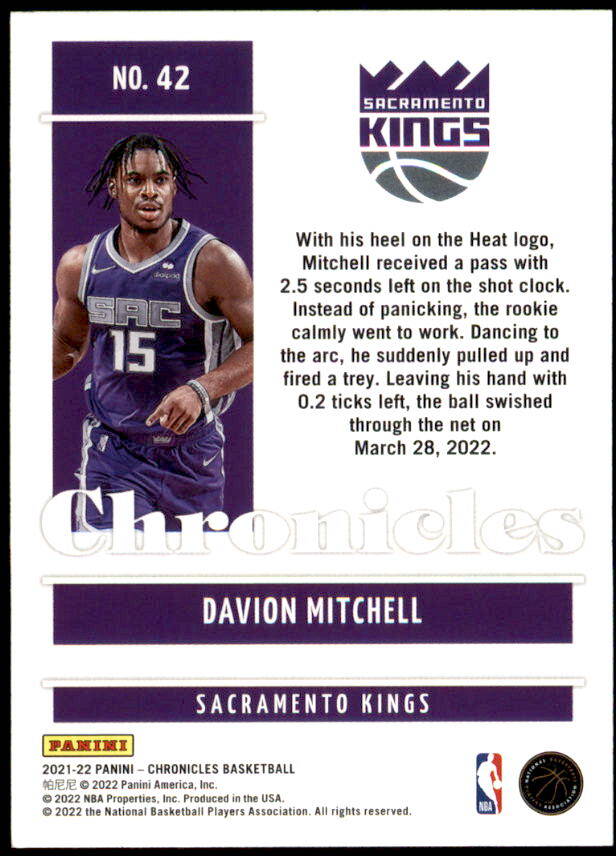 2021 Panini Chronicles Davion Mitchell Rookie (#42)