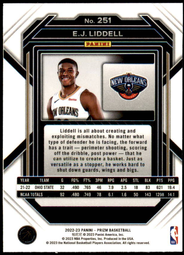 2022 Panini Prizm E.J. Liddell Rookie (#251)