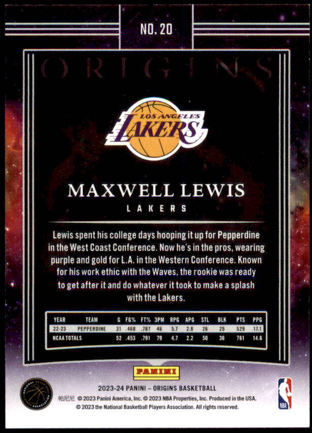 2023 Panini Origins Maxwell Lewis Rookie (#20)