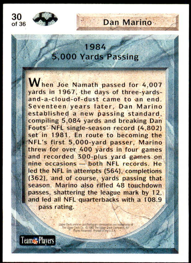 1992 Upper Deck Dan Marino Football Heroes (#30)