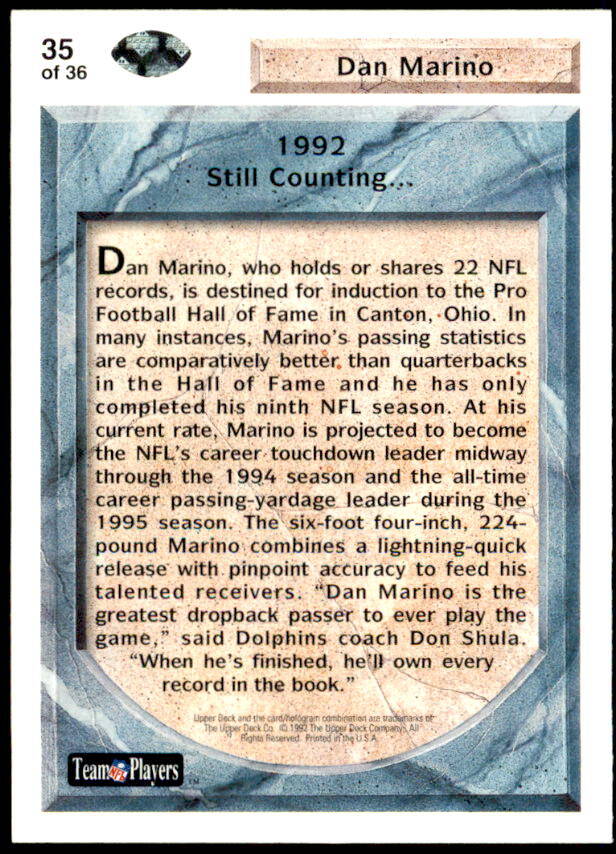 1992 Upper Deck Dan Marino Football Heroes (#35)