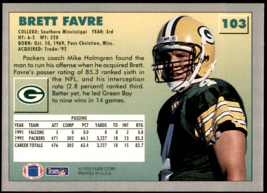 1993 Fleer Brett Favre (#103)