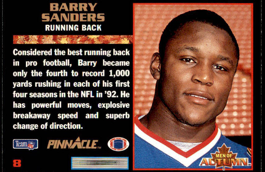 1993 Pinnacle Barry Sanders Men of Autumn (#8)