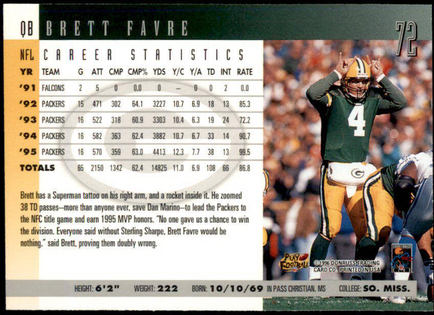 1996 Donruss Brett Favre (#72)