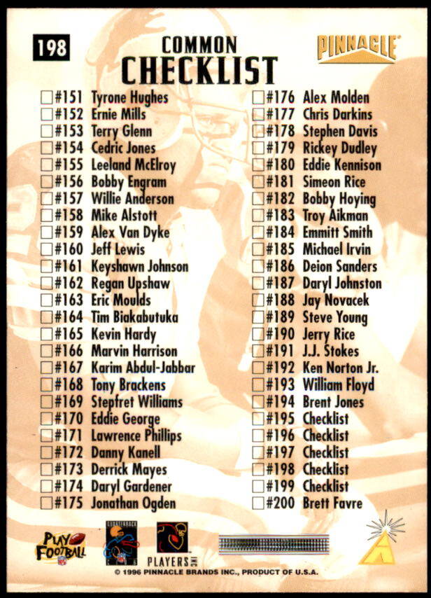 1996 Pinnacle Barry Sanders Checklist (#198)