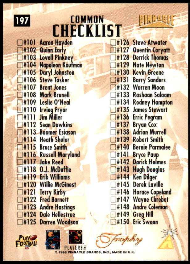 1996 Pinnacle Emmitt Smith Trophy Collection Checklist (#197)