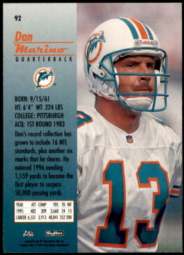 1996 SkyBox Premium Dan Marino (#92)