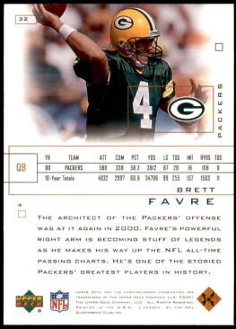 2001 Upper Deck Pros & Prospects Brett Favre (#32)