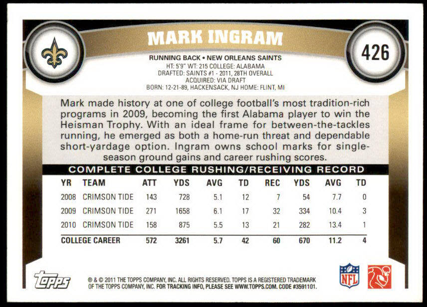 2011 Topps Mark Ingram Rookie (#426)