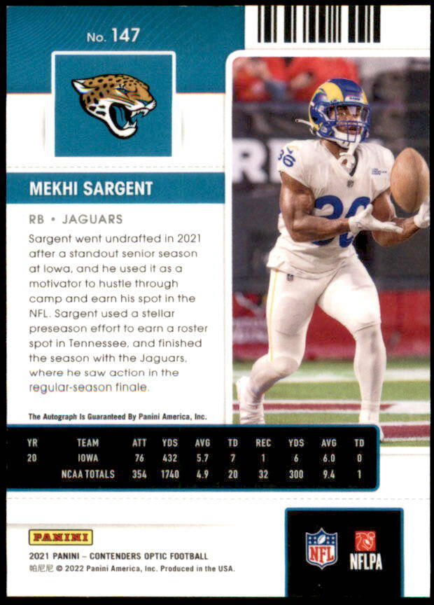 2021 Panini Contenders Optic Mekhi Sargent Rookie Ticket Autograph (#147)