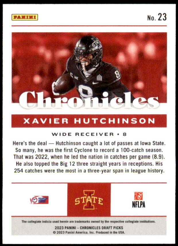 2023 Panini Chronicles Draft Picks Xavier Hutchinson Rookie Year (#23)