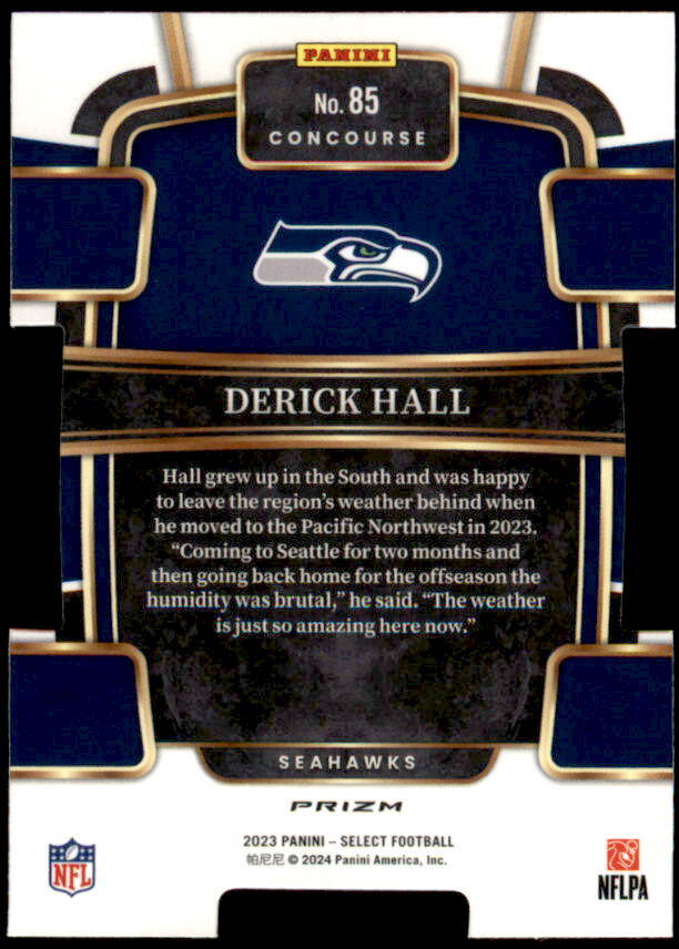 2023 Select Derick Hall Silver Die-Cut Prizm Rookie (#85)