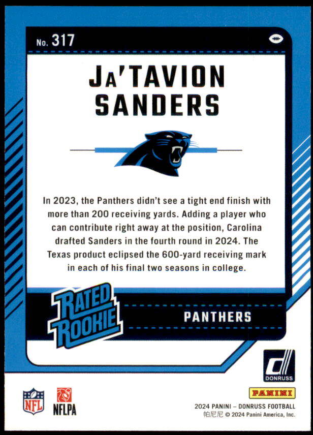 2024 Donruss Ja'Tavion Sanders Rated Rookie (#317)