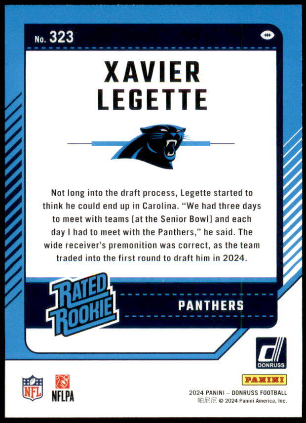 2024 Donruss Xavier Legette Rated Rookie (#323)