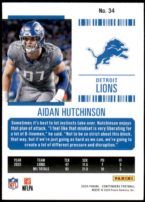 2024 Panini Contenders Aidan Hutchinson Red Game Ticket (#34)