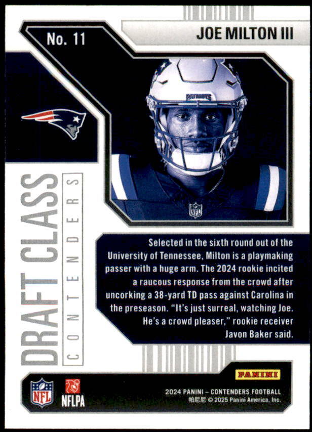 2024 Panini Contenders Joe Milton III Draft Class Red (#11)