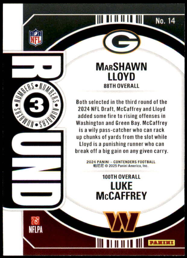 2024 Panini Contenders Luke McCaffrey Round Numbers (with MarShawn Lloyd) (#14)