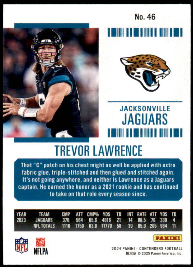 2024 Panini Contenders Trevor Lawrence Bronze Game Ticket (#46)