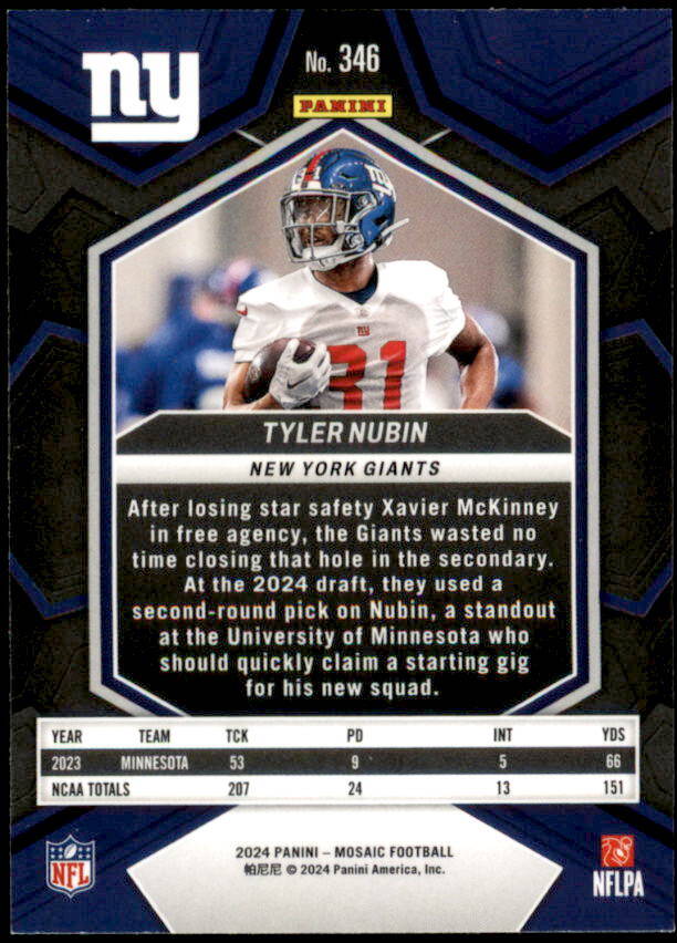 2024 Panini Mosaic Tyler Nubin Rookie (#346)