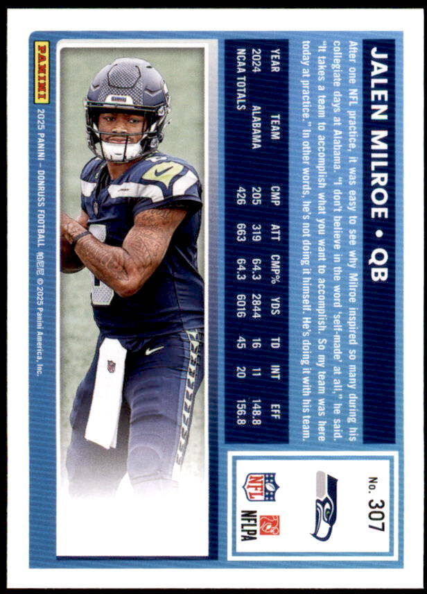 2025 Donruss Jalen Milroe Rated Rookie (#307)